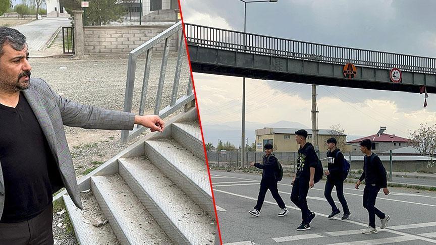 Iğdır’da, 3 lisenin bulunduğu etraf yolu üzerine 15 yıl evvel kurulan üst geçidi, öğrenciler ve vatandaşlar, ‘Yolumuzu uzatıyor’ diyerek kullanmıyor.