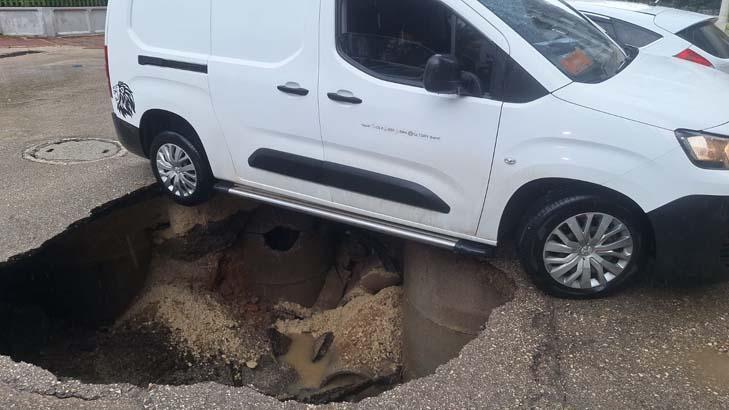 Adana’da saatler süren yağış sonrası merkez Çukurova ilçesindeki Güzelyalı Mahallesi 81162 Sokak’ta yol çöktü. Bu sırada 01 AHV 019 plakalı hafif ticari aracıyla sokakta seyir halinde olan Murat Özenir, yaptığı hareketle çöken alana düşmekten son anda kurtulurken, tekerlerden biri ise çukurda kaldı.