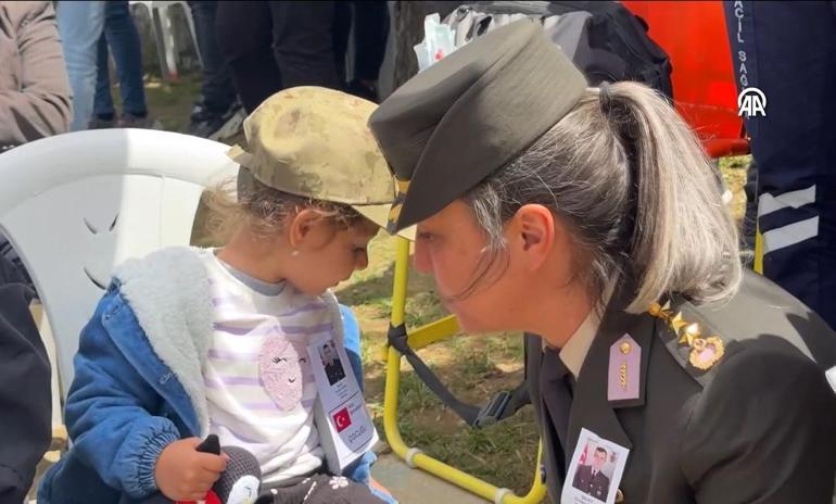 Bir bayan kumandan, şehidin 4 yaşındaki kızı Alya’nın kıyafetine, babasının fotoğrafı ve “şehit çocuğu” yazan kağıdı toplu iğne ile taktı. Komutanın “dikkat edelim iğne sana batmasın” sözleri üzerine Alya da “Toplu iğne babama batıyor. Babaya batmadan kenardan yapalım.” dedi.