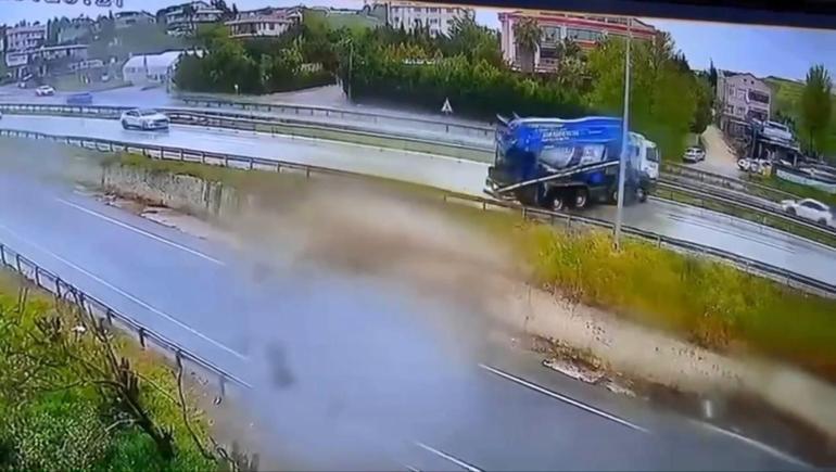 Büyükçekmece’de kayganlaşan yolda 3 kamyon kaydı, facianın eşiğinden dönüldü