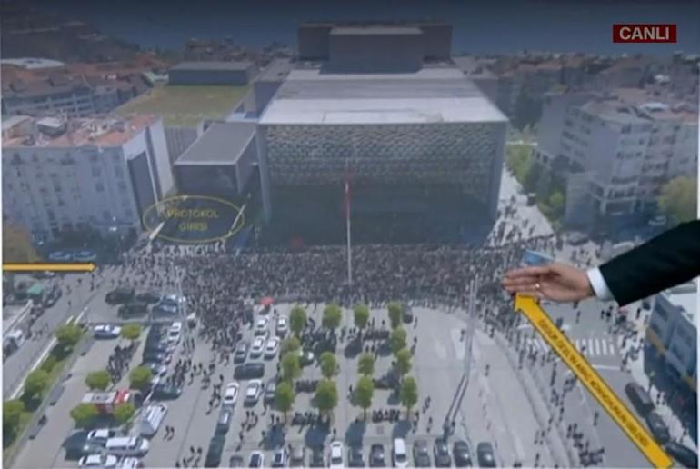 Burası The Marmara’nın olduğu nokta. Saat 10.00 sıralarında Özgür Özel’in olduğu kafile buraya gelip park ediyor. Daha sonra 11.04 üzere aslında buradan geçip girmek istiyorlar fakat emniyet vazifelileri burada 5 bin vatandaşın olduğunu belirterek, öteki taraftan girmeleri isteniyor. Buradan protokal girişinden içeriye çok rahat girebilecekleri söyleniyor. Ancak o denli olmuyor. Araçları aksi bir dönüş yapıp başka alana geçiyorlar. Sayın Özel ve beraberindeki takım de yürüyerek içeriye giriş yapıyor. Bu giriş anını anlatan fotoğraf…