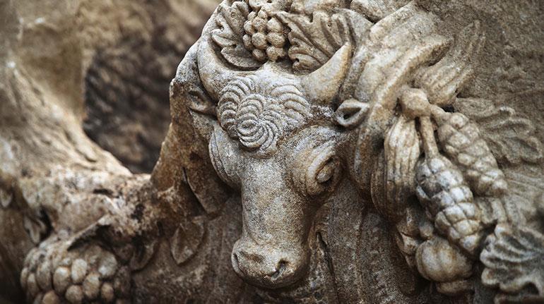 “Yaklaşık 2 bin yıl öncesinin zenginliğini, ihtişamını, gösterişliliğinin hepsini burada görmek mümkün. Bitkiler, bilhassa girlandlar çok hoş ve bu türlü dolu dolu canlı işlenmiş. Köşelerinde koç başları, etrafından kozalak, asma ve zeytin yaprakları, üzüm, nar ve haşhaş üzere meyveler betimlenmiş durumda. Köşelerinde bulunan koç başlarına baktığınızda bile o periyodun zenginliğini ve ihtişamını anlamanız mümkün. Dar kenarlar ve orta kısımlarında bulunan boğa başları, tüm figürleri tamamlayan ayrıntılardan kimileri. Bölgede hafriyat çalışması devam ediyor. Her kazma bizim için yeni umut, yeni eser ve hoş sonuçlar olabilir.”