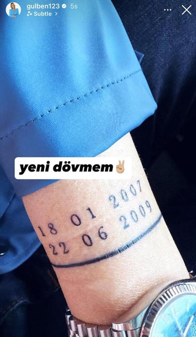 Instagram hesabından paylaşım yapan Gülben Ergen koluna iki farklı tarih yazdırdı. Bir tarih 18 Ocak 2007’ye öbür tarih 22 Haziran 2009’a aitti.