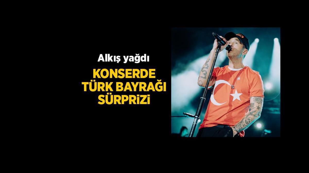 Konserin en büyük sürprizi ise kümenin solisti Ryan Tedder’ın üzerinde Türk bayraklı bir tişörtle sahneye çıkmasıydı.