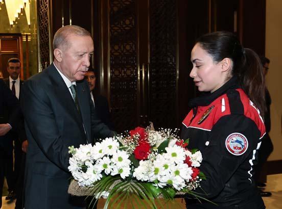 Cumhurbaşkanı Recep Tayyip Erdoğan, Cumhurbaşkanlığı Külliyesi’ne gelişinde, Türk Polis Teşkilatı’nın 180. kuruluş yıl dönümü hasebiyle polisler tarafından karşılandı.
