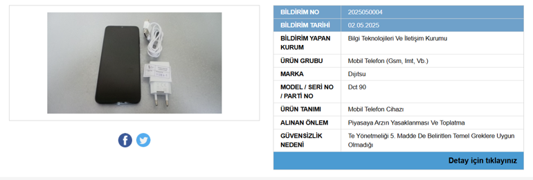4 cep telefonu ve 1 kablosuz hoparlörün Telefonların Telsiz Ekipmanları Yönetmeliği’nin 5’inci hususuna karşıt olduğu tespit edildi. Teknolojik eserlerin insan sıhhatine ve elektromanyetik uyumluluğa dair teknik gereklilikleri karşılamadığı belirlendi.