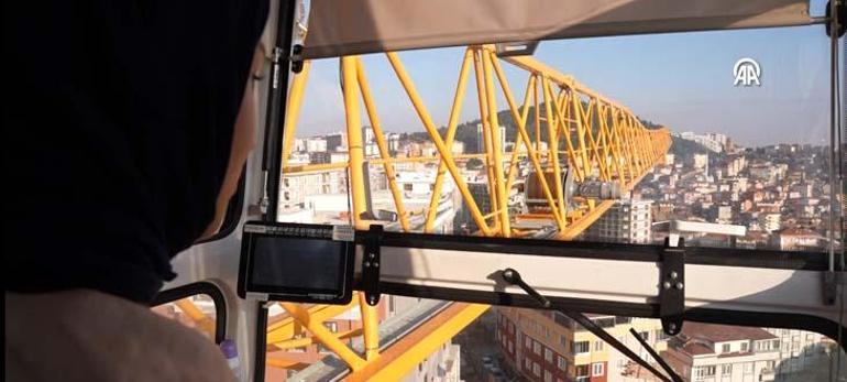 Çalıştığı firmada kule vinç operatörü olarak her gün metrelerce yükseğe çıkan Düzgün, 6 aydır mesleğini tutkuyla yapıyor.