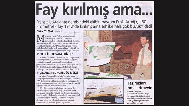 Prof. Dr. Üşümezsoy o gün, bugün de vurguladığı üzere açıklama yapmıştı. Dünyanın en tanınmış isimlerinden Fransız bilim adamı Rolando Armijo başkanlığındaki heyetin hazırladığı raporun Amerika’da yayımlandığını belirterek, “Urania, Le Suroit, üzere birçok gemi Marmara’da inceleme yaptı. Tüm bu gemilerin çalışmalarının akabinde 15 Amerikalı, Fransız, İtalyan ve Türk bilim adamlarının oluşturduğu 25 kişilik heyet bir rapor hazırladı. Raporda 1894 zelzelesinde Adalar bölgesindeki fayın 200 yıllık gücünün boşaldığı tespit edildi. Birçok bilim adamı ‘Adalar’ın güneyinden başlayıp Tekirdağ çukurluğuna kadar ulaşan 180 kilometrelik fay kırılacak, 7.8 büyüklüğünde zelzele olacak’ diye ayet üretmeye başladılar. Raporda görüldü ki bu fayın yalnızca Büyükçekmece önünden başlayan 30 kilometrelik kısım etkin. Başka kısımlar gücünü boşaltmış. Yani Adalar’daki yarar kırılma olmayacak” diye konuşmuştu. Prof. Dr. Üşümezsoy’a göre bilinen fay haritasında bir şeyler gözden kaçırılıyordu ve olmayan fayın sarsıntı üretmesi bekleniyordu.