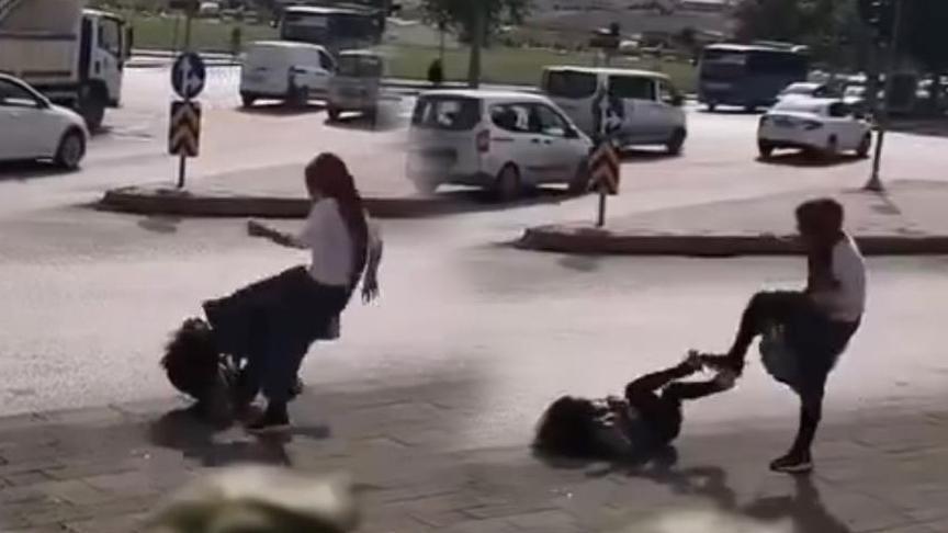 Kavga esnasında bayanlardan biri başkasının saçından tutarak yere savurdu. O anlar bir vatandaşın cep telefonu kamerasına yansıdı.